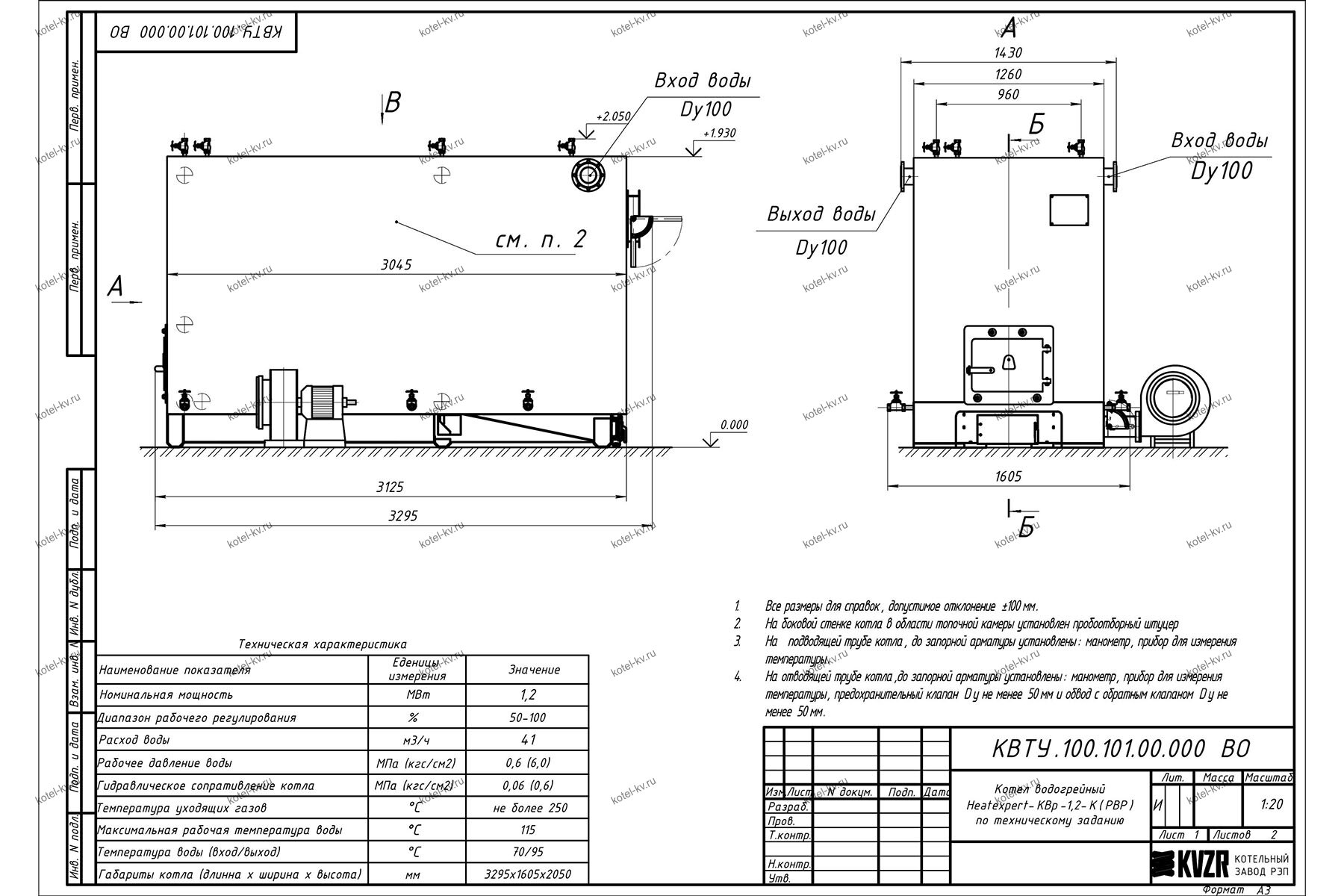 Чертежи котла с водяными колосниками 1200 кВт